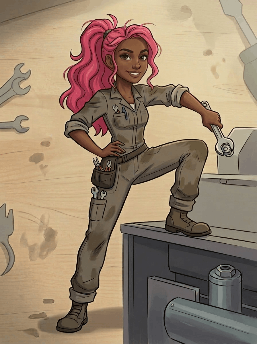 Maya is the Red Fox's fierce and energetic Lead Engineer, responsible for keeping the ship’s complex systems—and its crew—running smoothly. With a vibrant personality and a "mother bear" instinct, she isn't afraid to speak her mind or handle the tough repairs that keep the vessel out of danger. Her technical expertise is matched only by her loyalty to the team.